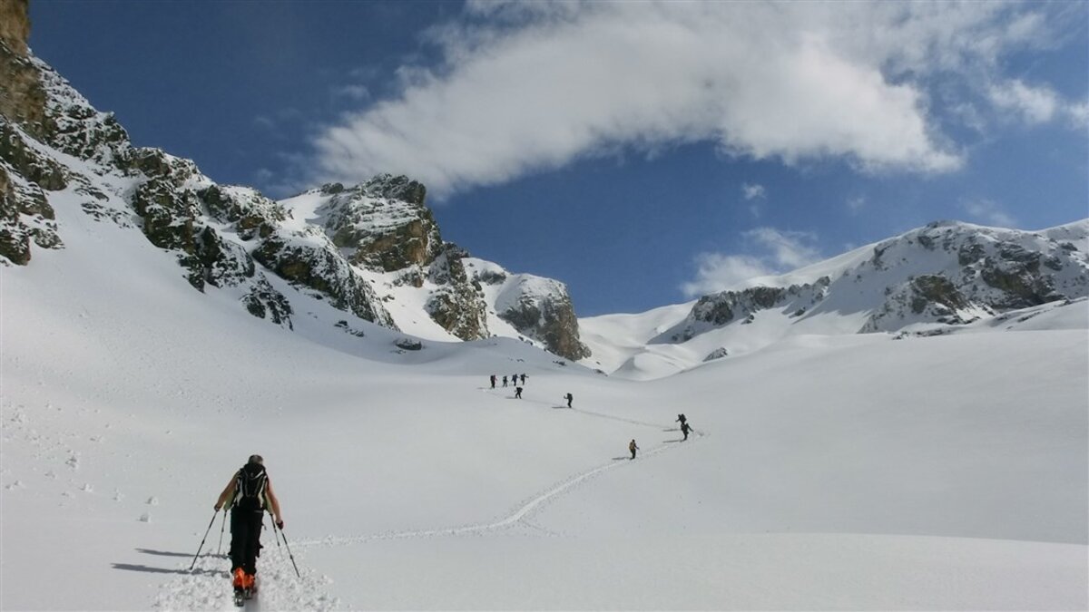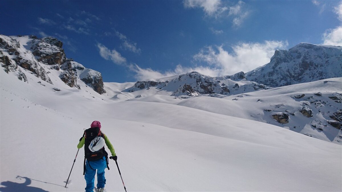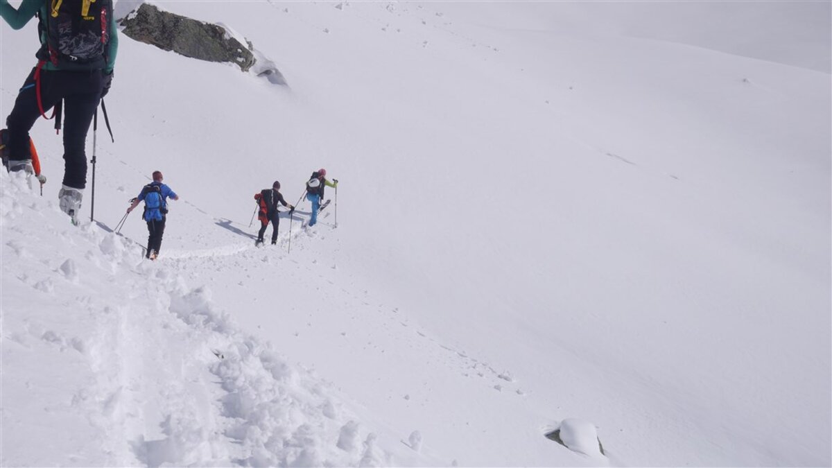 Wie angesagt wird das Wetter schön, allerdings ist die Lawinengefahr nicht zu unterschätzen. Also suchen wir uns was defensives. Zum Monte Bellino ist es ein langer Weg und es gibt keine Steilstücke.