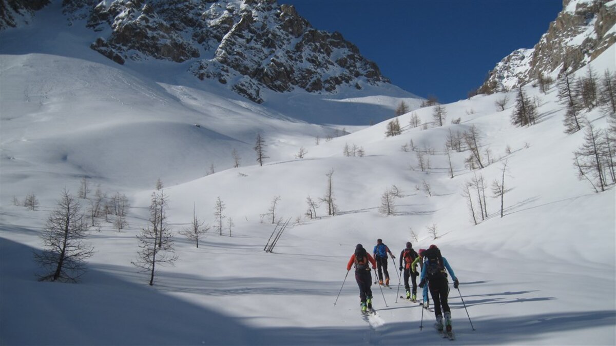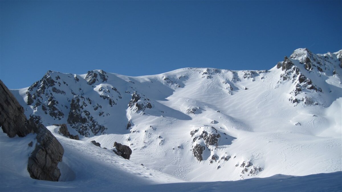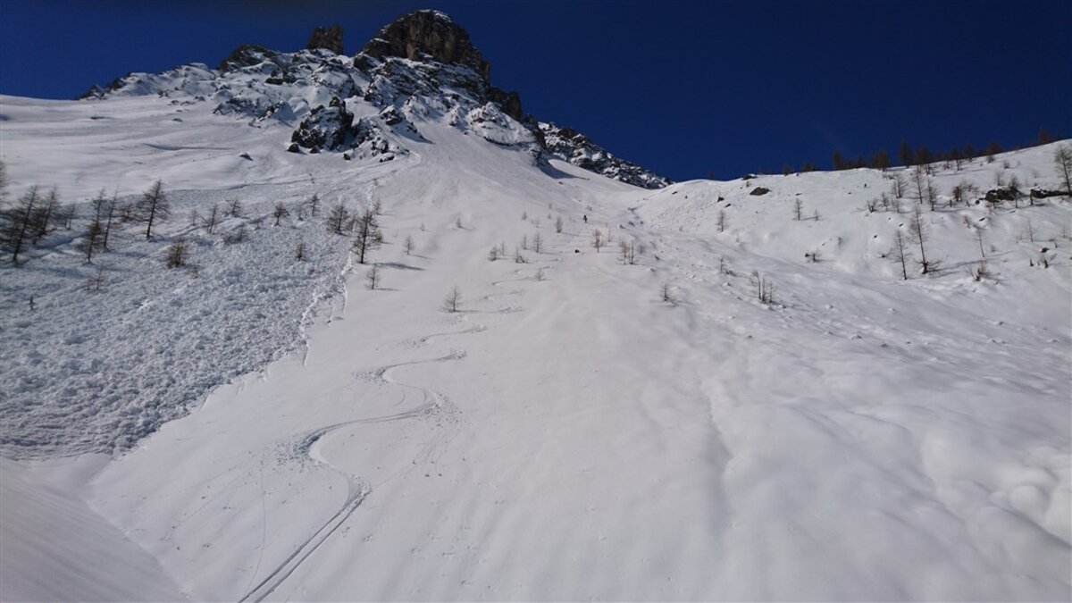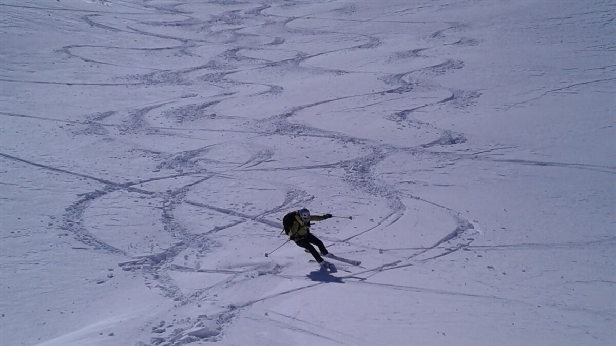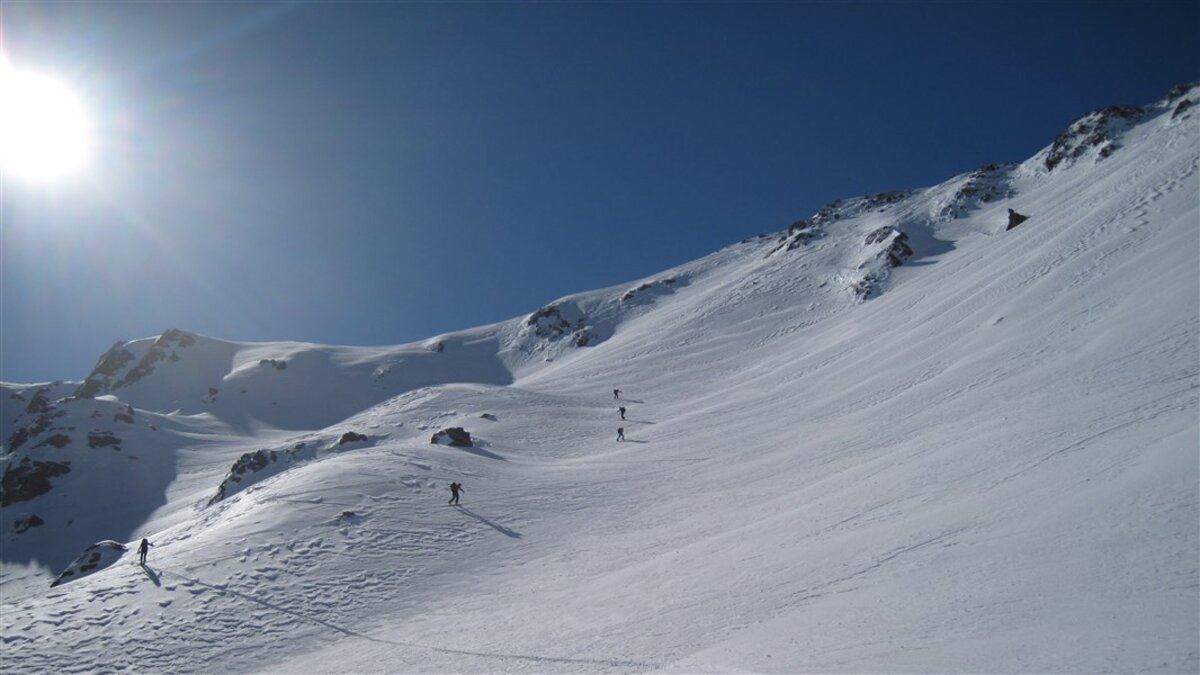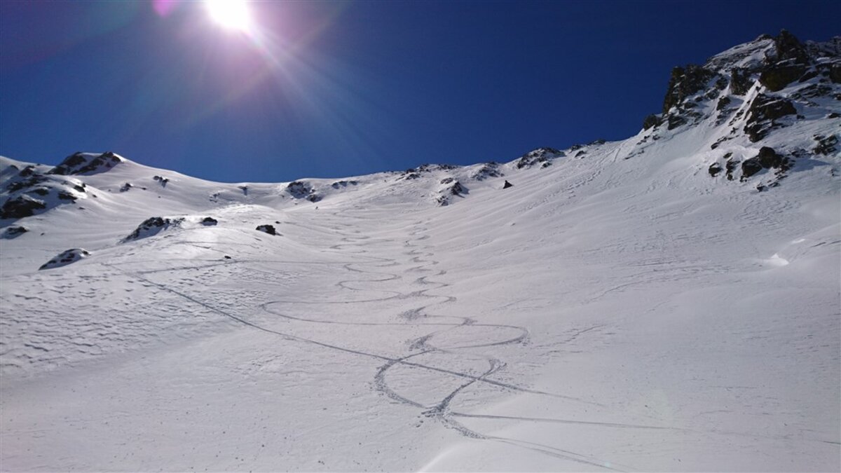 Das Wetter ist wieder schön, wir suchen uns heute mal was nordseitiges in der Hoffnung auf Pulver. Und wieder wurden wir nicht enttäuscht. Der war zwar schon gesetzt aber dadurch nicht schlechter zu fahren. Und vor allem: während auf dem Bric Cassin ziemlich viel los war, waren wir einsam unterwegs.