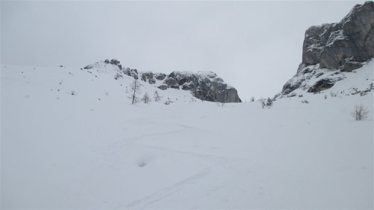 Oh, doch gar kein so schlechtes Wetter, da geh ich doch eine Skitour - meine Standardtour. Wieder ist neuer Schnee gefallen, knappe 10cm liegen auf den Spuren vom Wochenende. Bis zur Querung in die Tauernscharte ist niemand vor mir, dann kommt eine Spur aus Richtung Skigebiet.