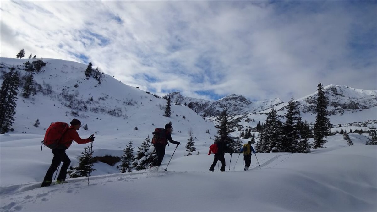 Das zweite Ziel hier in Namlos war die Hintere Steinkarspitze, allerdings nicht von Kelmen, sondern wegen des wenigen Schnees unten lieber von Rauth aus, denn da gehts zuerst über eine Forststraße.