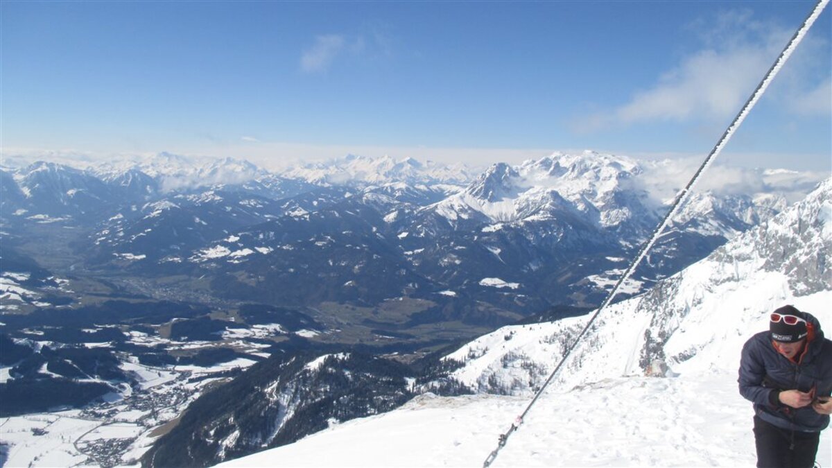 In der Früh schnell auf den Eiskogel - was sonst. Diesmal leider zu früh, die Sonne konnte noch nicht an der Schneedecke arbeiten. Macht nichts, war trotzdem ok. Heute auch mal schneller hoch, aber die 5 Minuten zum letzten mal sind die extra Anstrengung eigentlich nicht wert. Wen treff ich beim hochgehen? Stefan, den Bergretter aus dem Lungau, den ich jetzt schon mehrmals zufällig auf Bergen getroffen hab - sehr lustig :-)