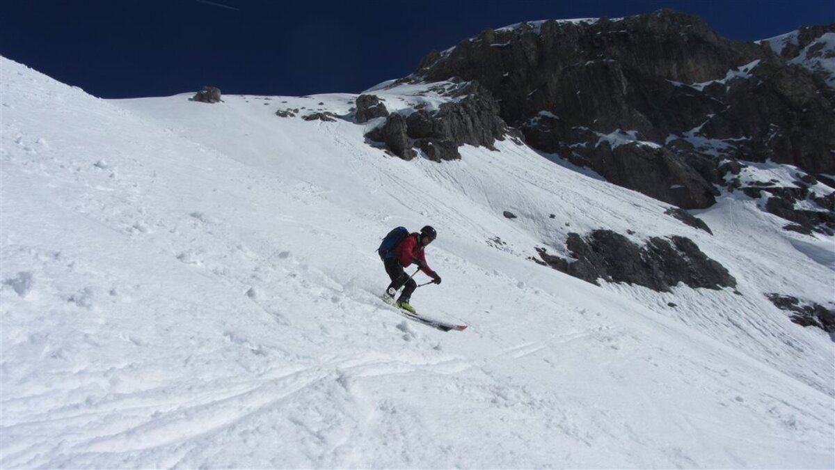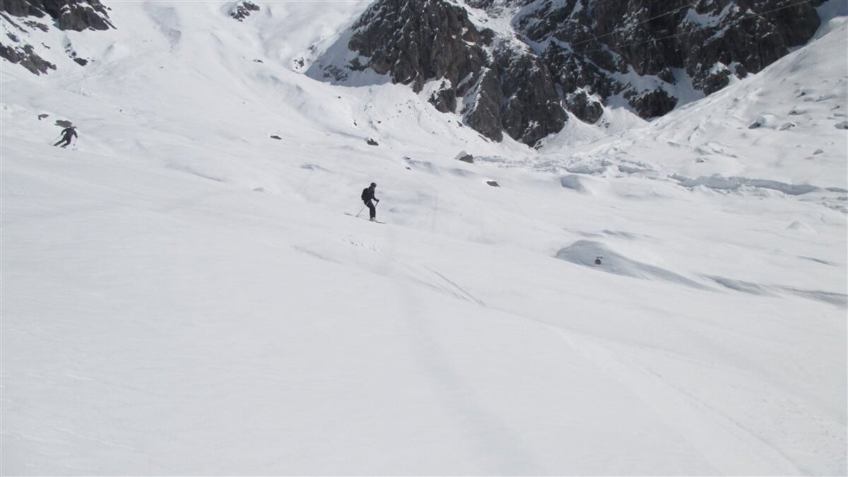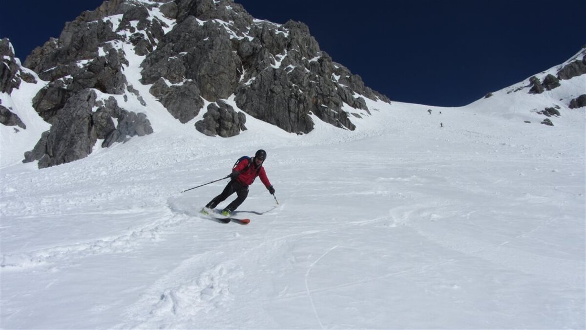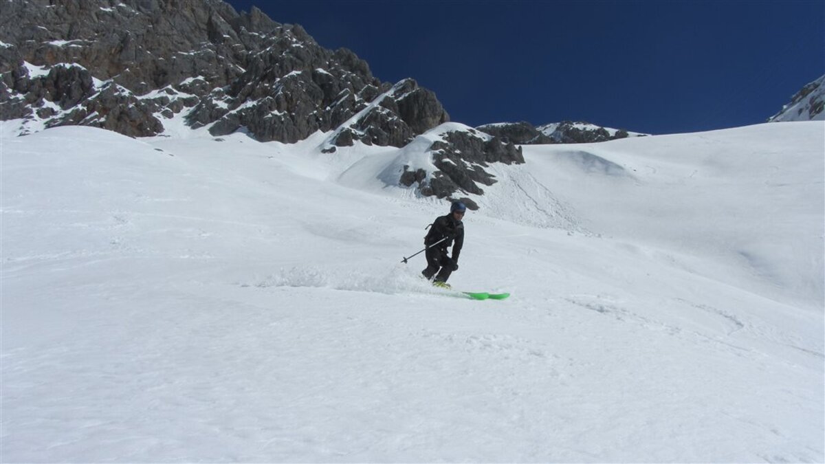 Dafür haben wir die optimale Abfahrtszeit erwischt, viel Firn und unten noch nicht zu weich.