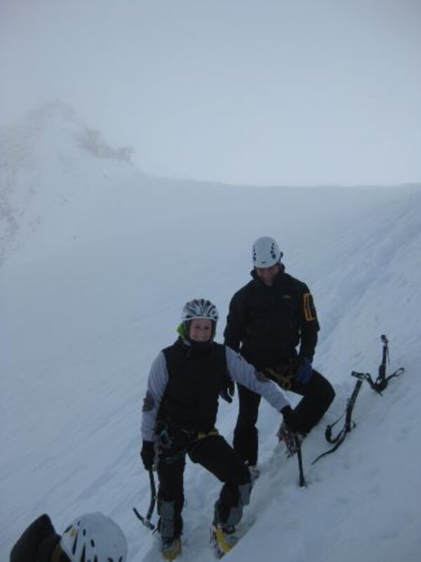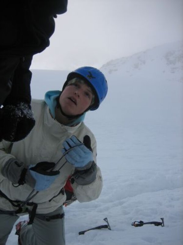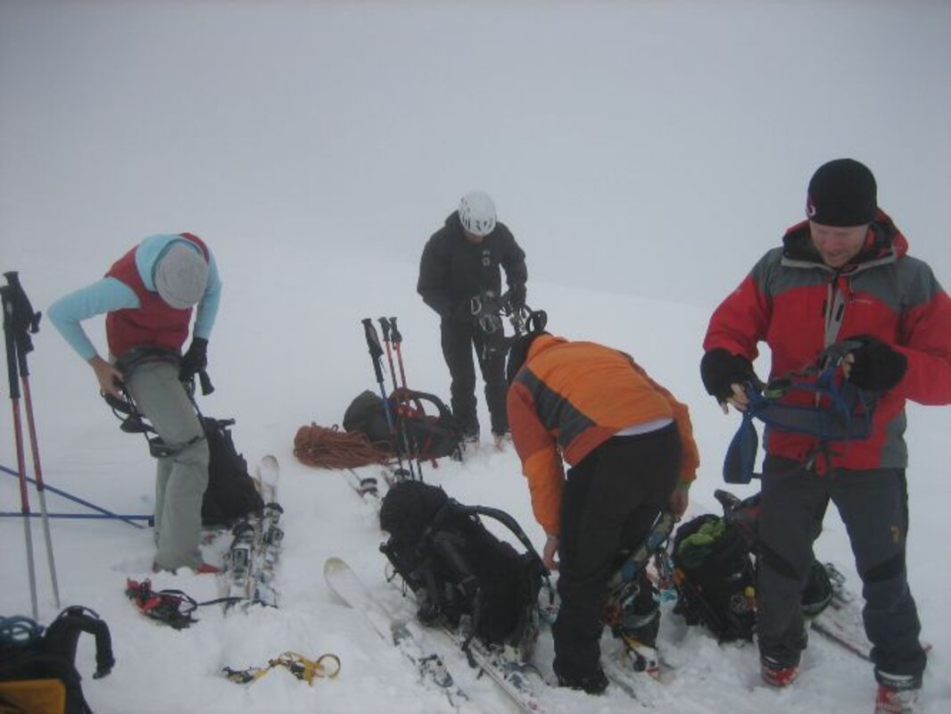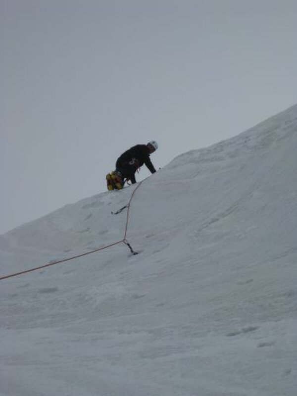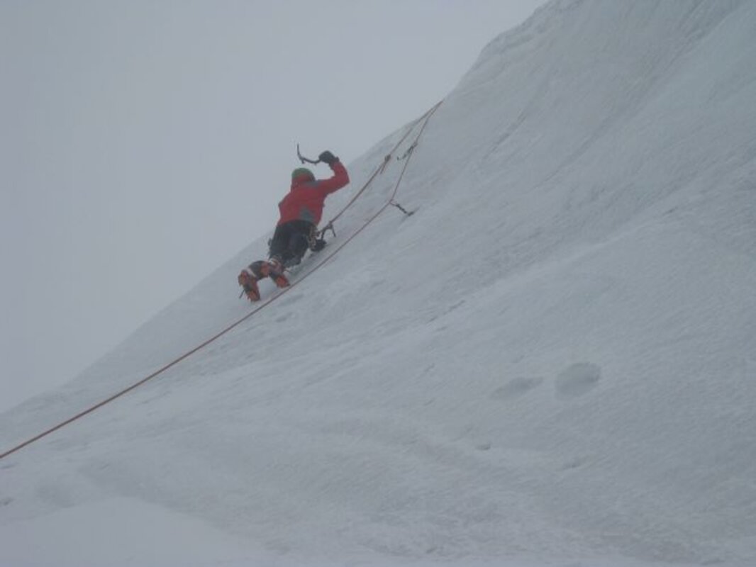 Hansjörg – der Bergführer – hat sich echt Mühe gegeben mit uns und wir haben viel mitgenommen von dem Tag, richtiges bewegen im Eis, Eisschrauben setzen, Eissanduhr, Standplatz und Abseilstand bauen.