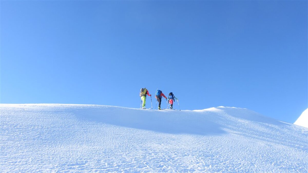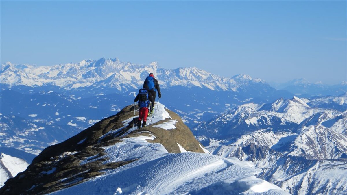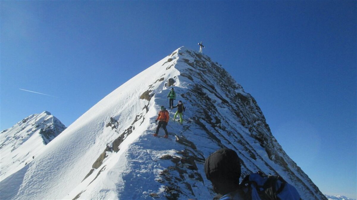Heute mal wieder was grösseres, von Fusch auf die Schneespitze. Vom Start weg mit Ski, nach der klaren Nacht bis zum Grat alles pickelhart. Endlich in der Sonne wird es angenehm, aber auch der Grat vom Zwingkopf zur Schneespitze zieht sich.